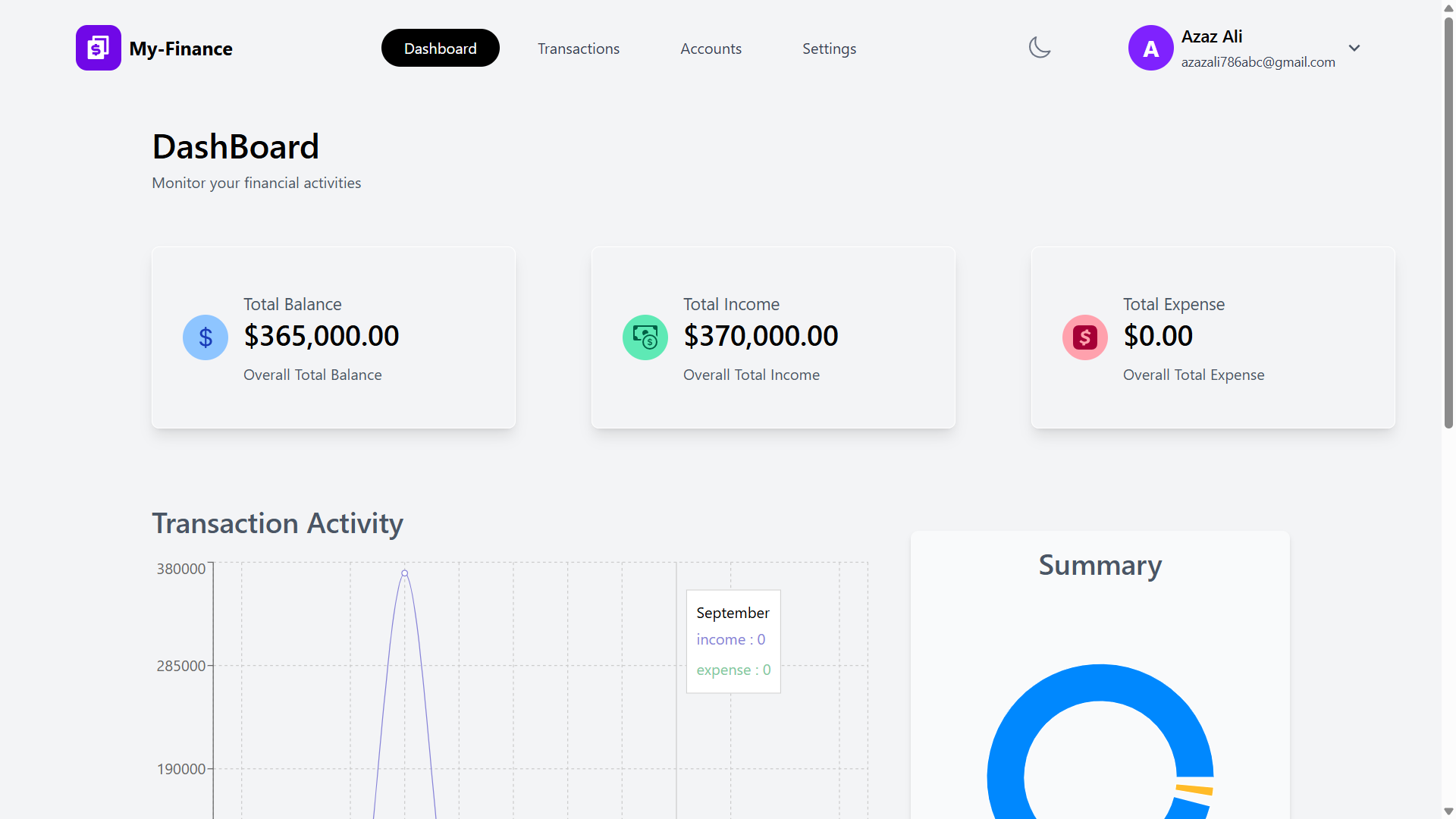 A finance management dashboard UI to track income, expenses, balances, and transactions. Features visual charts, summaries, and a clean modern layout focused on usability and clarity.